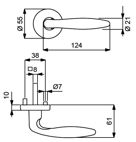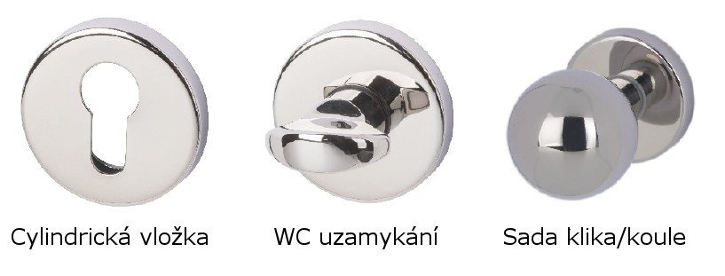 Sada kování obsahuje spojovací materiál a čtyřhran pro tloušťku dveří 38-42 mm.