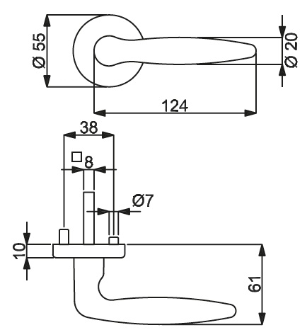 Sada kování obsahuje spojovací materiál a čtyřhran pro tloušťku dveří 38-42 mm.