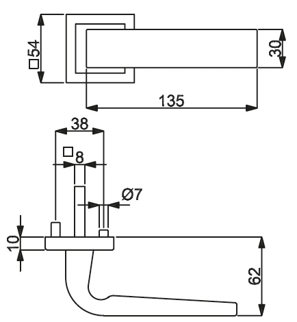 Sada kování obsahuje spojovací materiál a čtyřhran pro tloušťku dveří 38-42 mm.