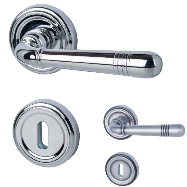 Kování je vyrobeno z masivní mosazi s povrchem chrom nebo šedá patina.