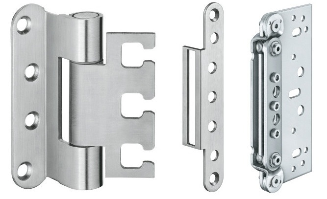 Sada pantu a montážního příslušenství pro instalaci falcových dveří s váhou do 100 kg a obložkovou zárubní.