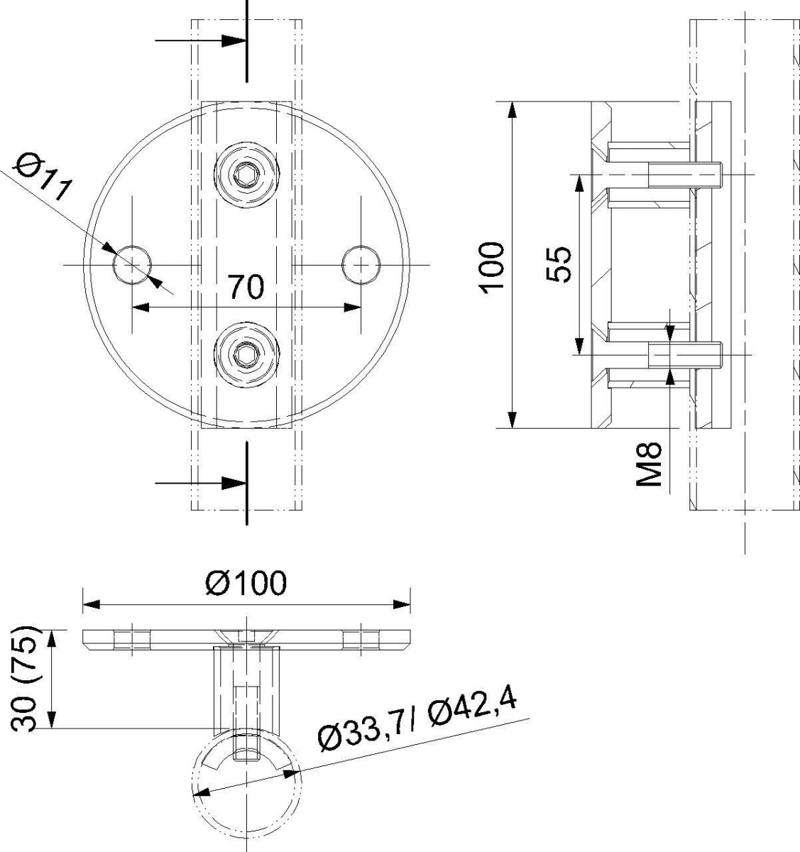Set pro upevnění sloupku zábradlí na zeď, nerez, kulatá