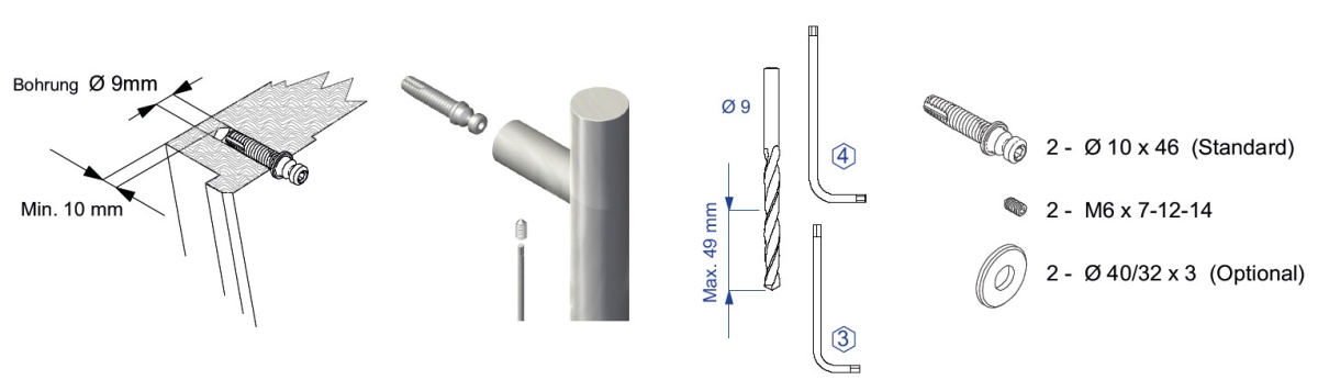 Dveřní madlo Südmetall Rhodos, nerez, 25x25 mm