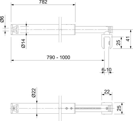 Délka tyče 790 - 1000 mm. Můžete zkrátit dle potřeby.