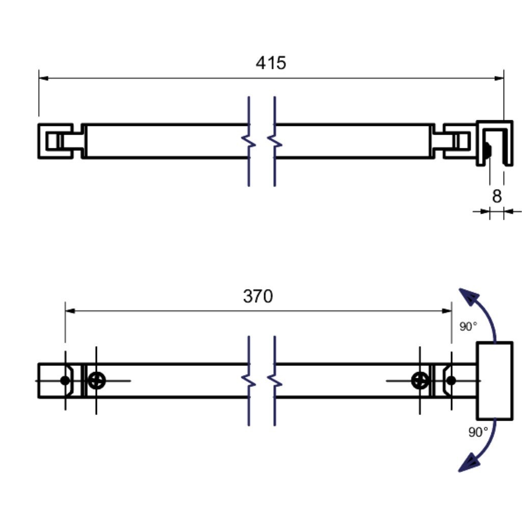 Stabilizační tyč SQUARE chrom, zeď/sklo