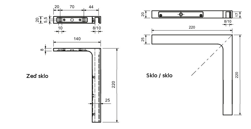 Stabilizační úhel pro sprchové zástěny, chrom / černá / bílá