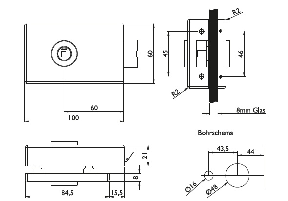 Klika ke kování pro skleněné dveře Südmetall Madrid