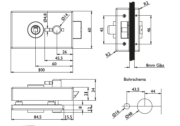 Klika ke kování pro skleněné dveře Südmetall Madrid