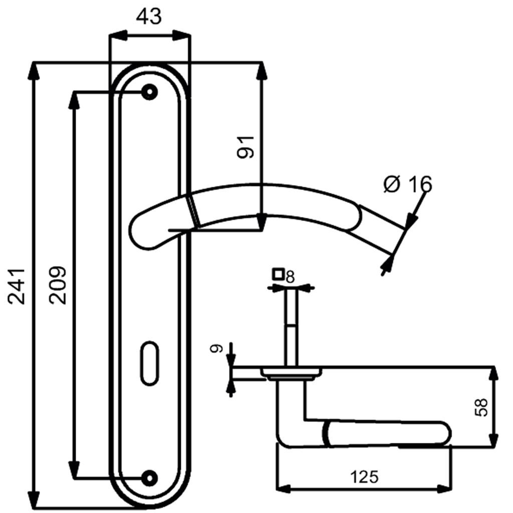 klika / klika, Obyčejný klíč, Nerez leštěná / Nerez satin