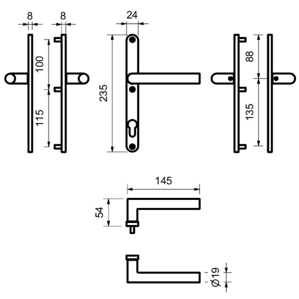 Štítkové kování pro rámové dveře s extra úzkým štítkem
