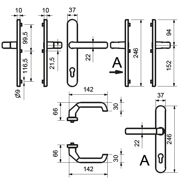 Uvedená cena je pro provedení tloušťky dveří 67 - 72 mm