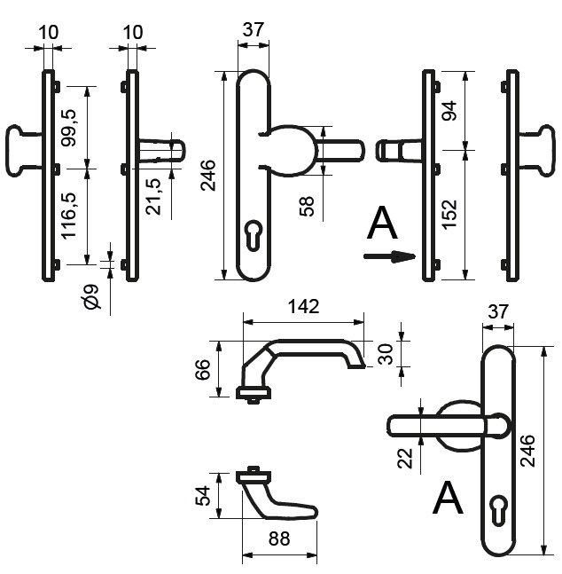 Štítkové kování pro rámové dveře