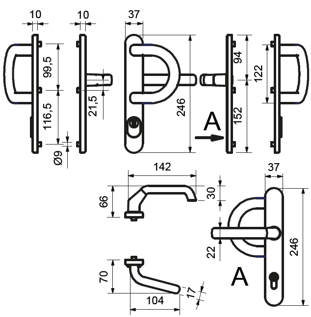 Uvedená cena je pro provedení tloušťky dveří 67 - 72 mm
