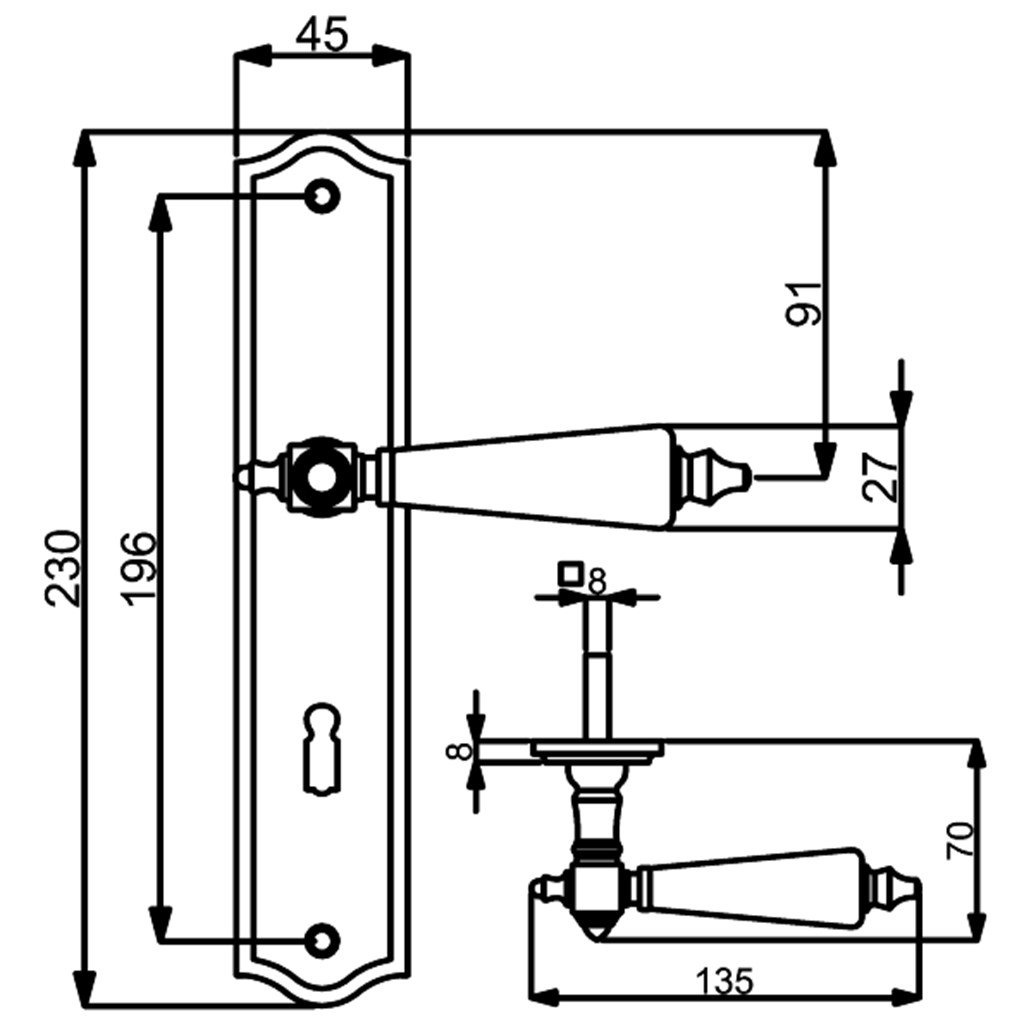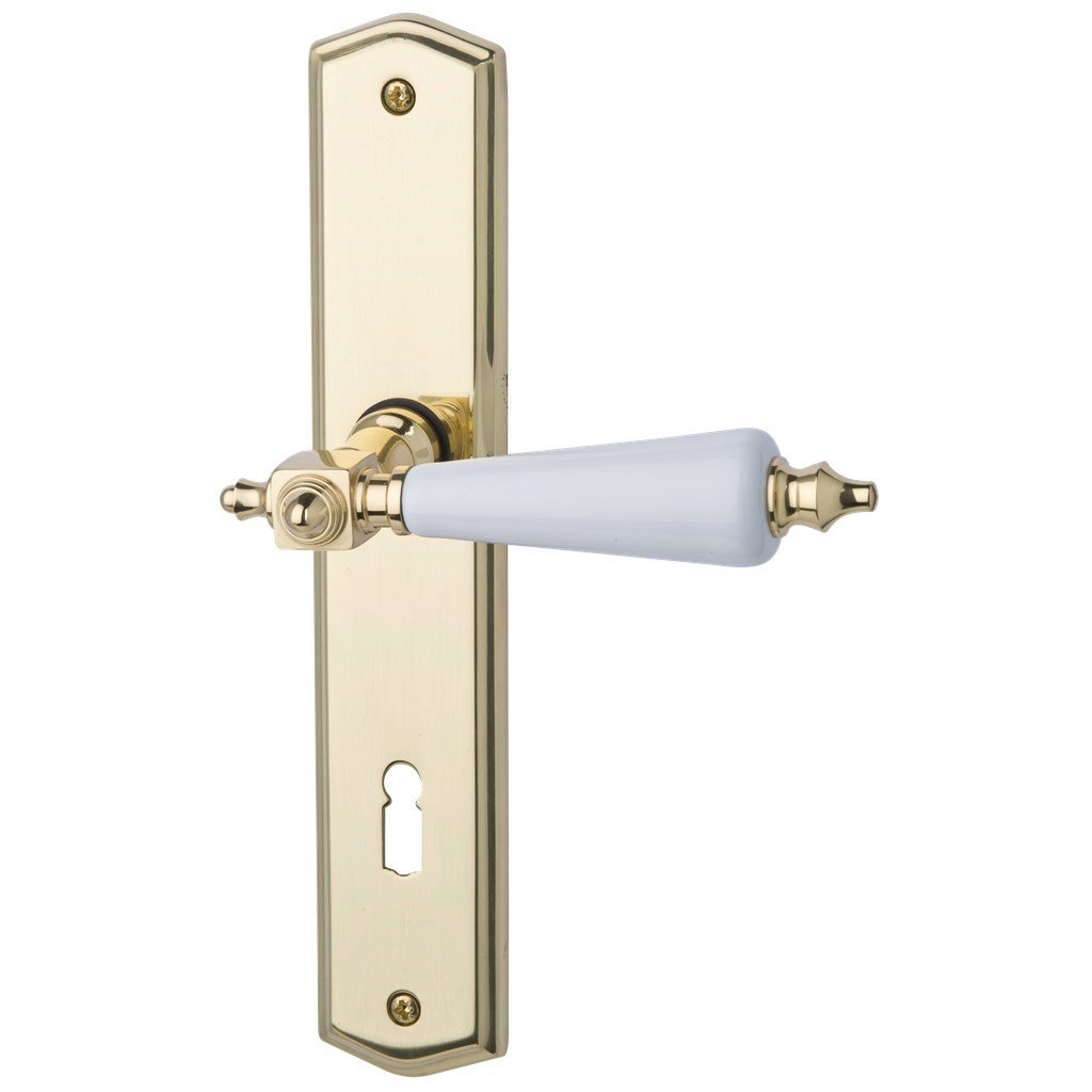 klika / klika, Obyčejný klíč, Mosaz leštěná / Bílá