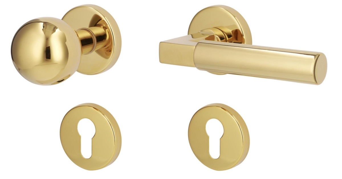 Südmetall Alaska-R, Robusta gold leštěná, TopSpeed Standardní interiérové dveře, Cylindrická vložka, Klika/koule - pravá