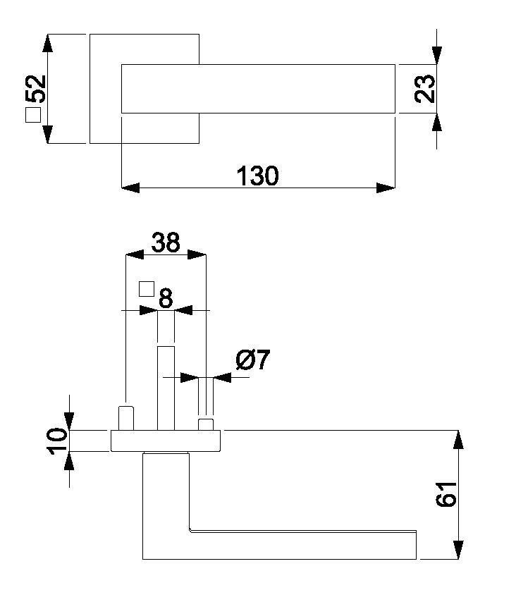 Klika je osazena pevně na rozetě s bajonetovým mechanismem a čtvercovou rozetou.