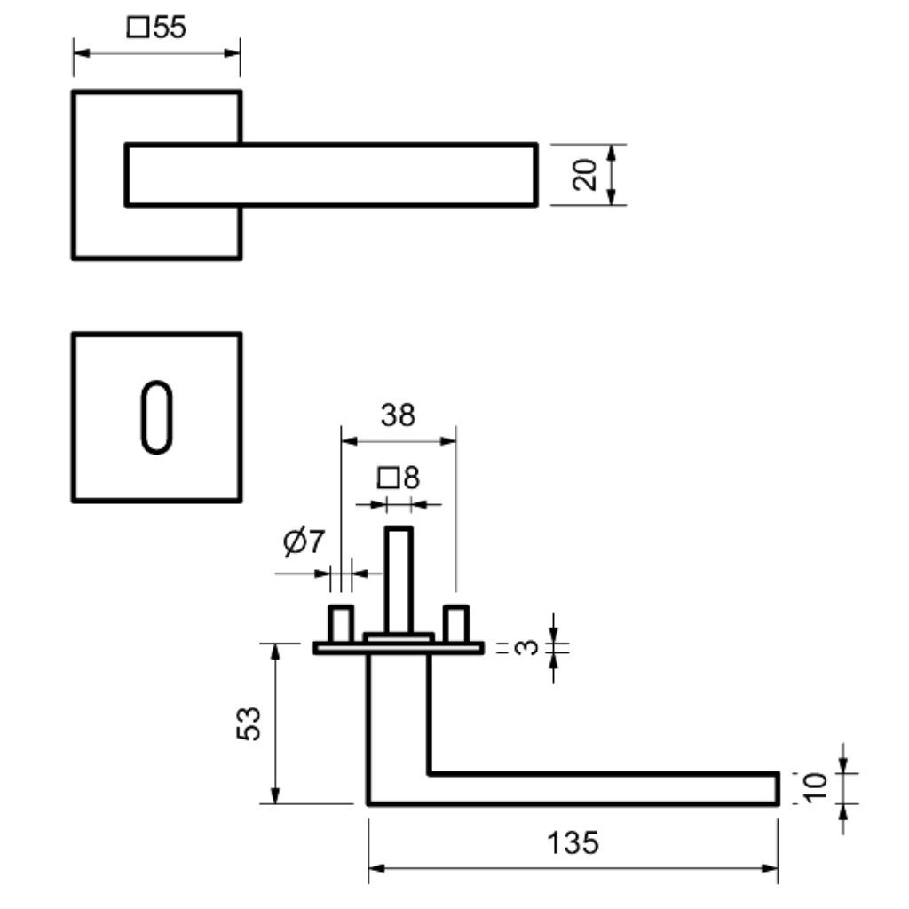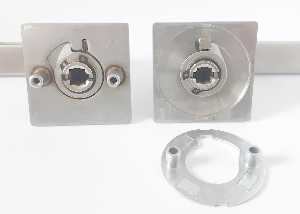 Speciální konstrukce umožňuje montáž rozety na plochu nebo zafrézovaní do dveří. Můžete použít i jako kování se zapuštěnými rozetami.