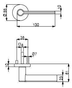 Sada kování obsahuje spojovací materiál a čtyřhran pro tloušťku dveří 38-42 mm.