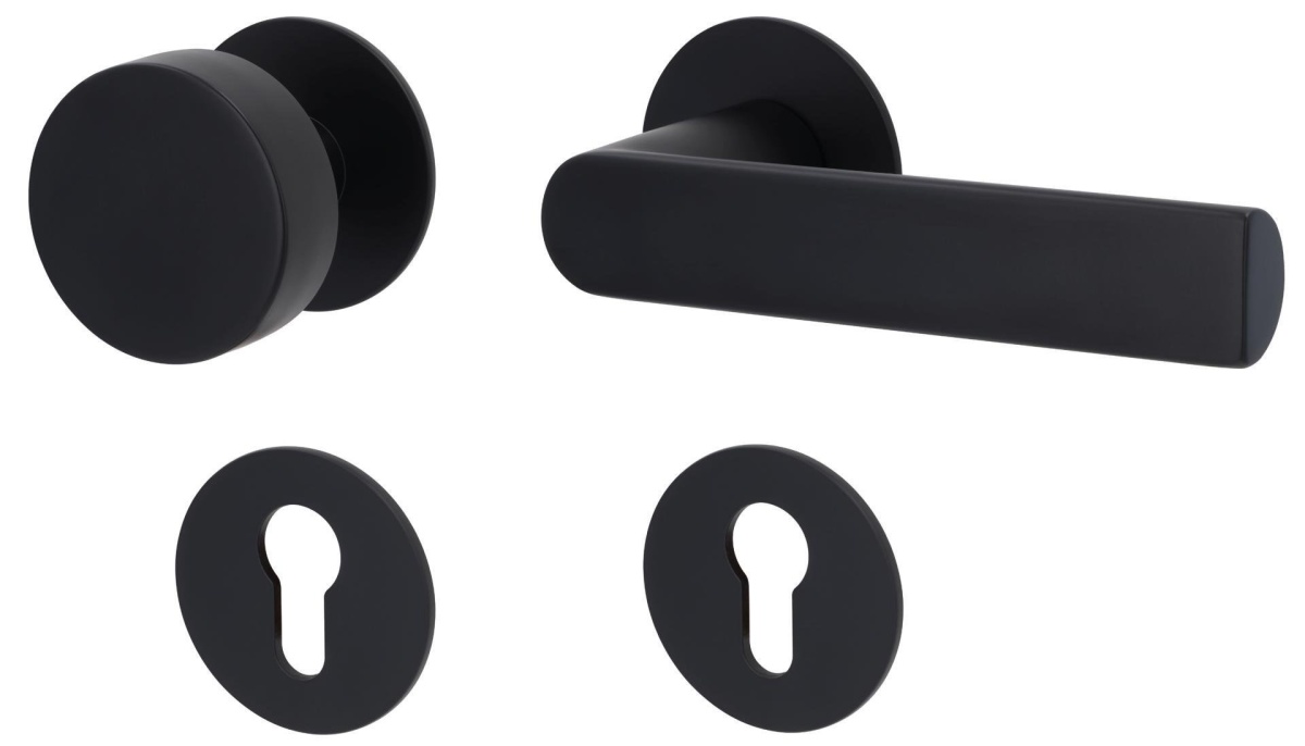 Südmetall Erlangen - R, nízká rozeta magnetická Černá matná, Cylindrická vložka, Klika/koule - pravá