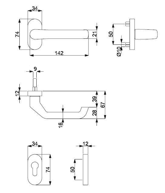 Kování klika/klika nebo klika/koule je včetně čtyřhranu 9 mm.