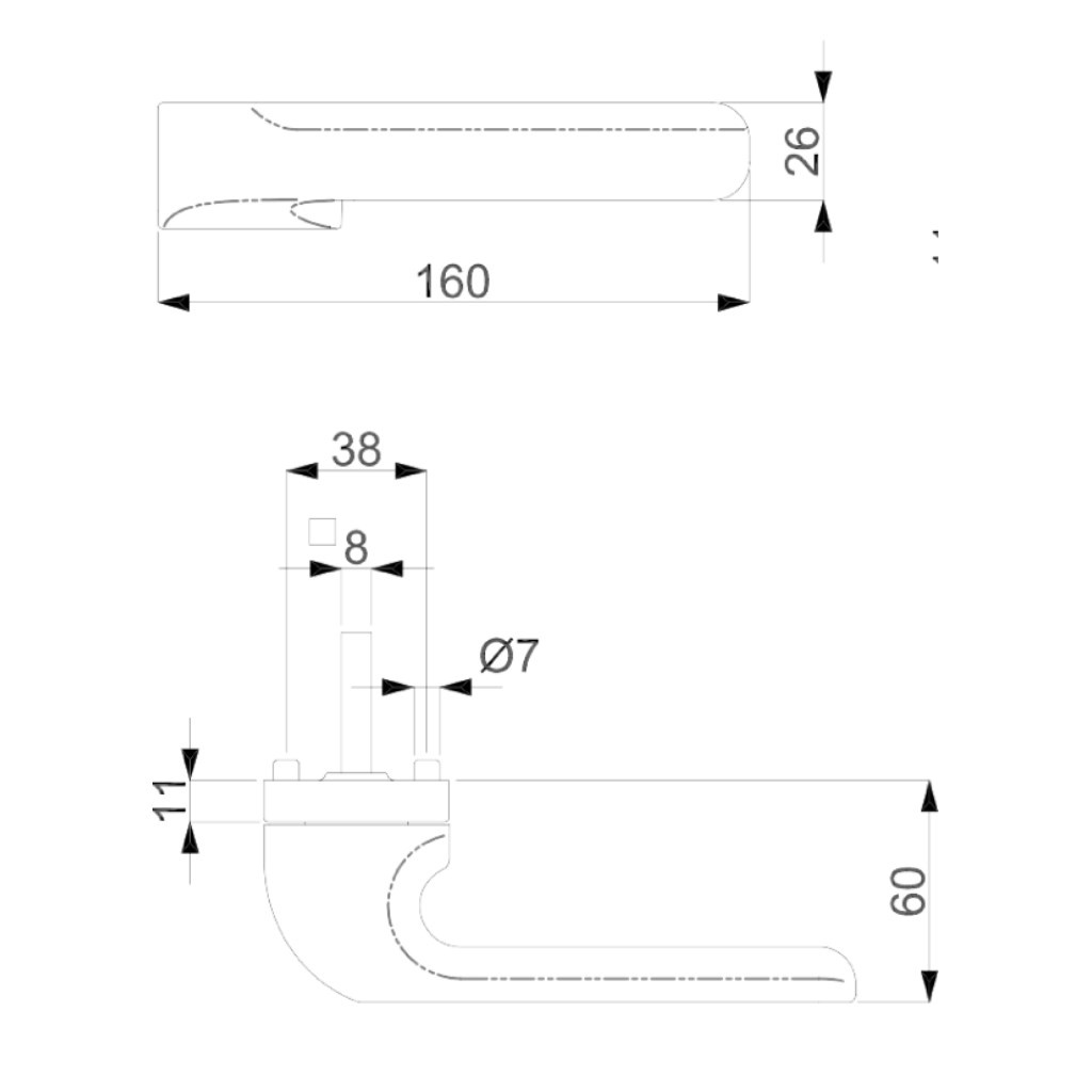 Sada kování obsahuje spojovací materiál a čtyřhran pro tloušťku dveří 38-42 mm.