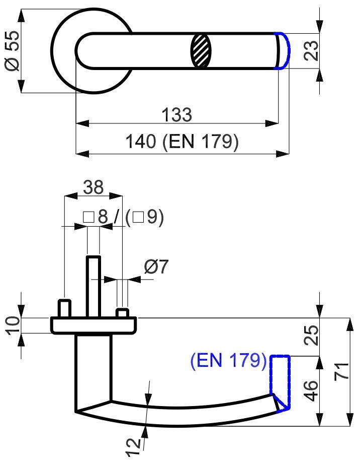 Sada kování obsahuje spojovací materiál a čtyřhran pro tloušťku dveří 40-45 mm.
