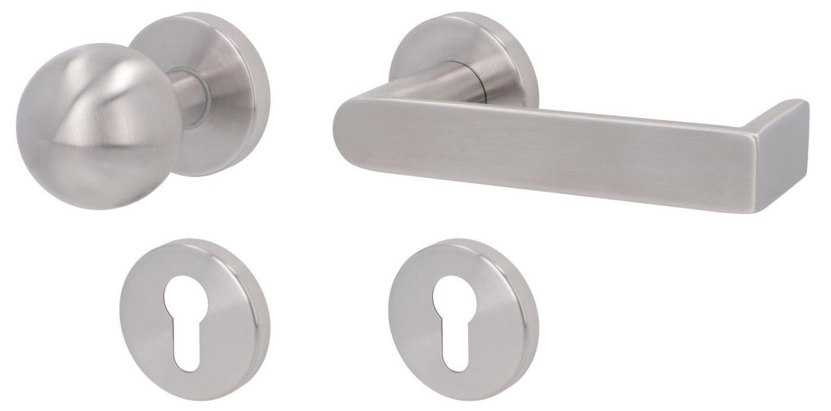 Sada kování obsahuje spojovací materiál a čtyřhran pro tloušťku dveří 40-45 mm.