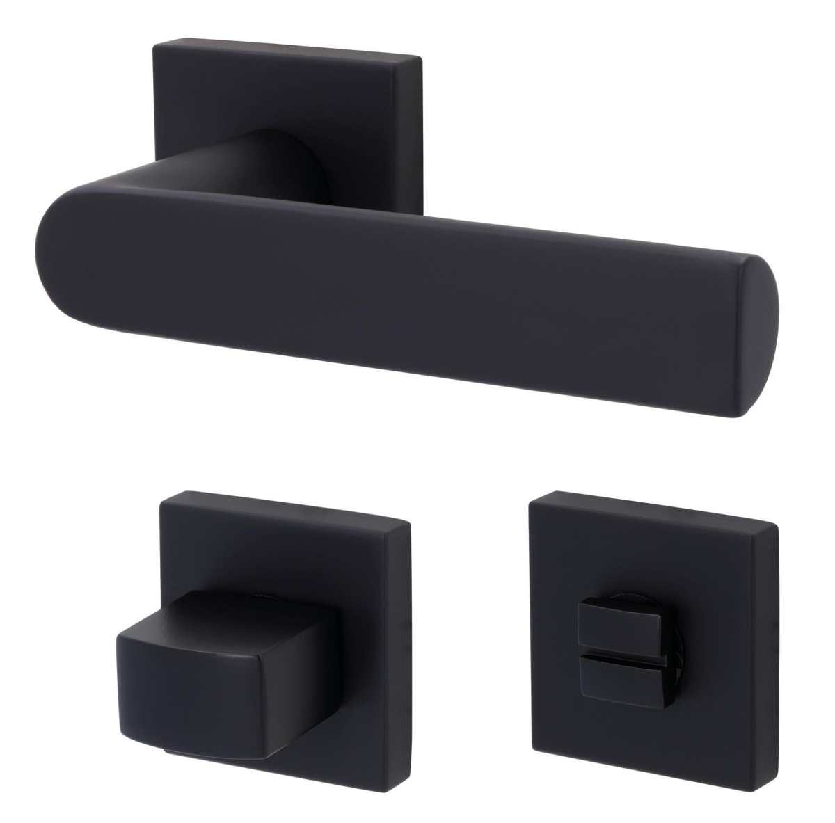Südmetall Korsika Quadro-R Black, TopSpeed Černá matná, klika / klika, WC uzamykání, čtyřhran 8 mm, Objektové dveře