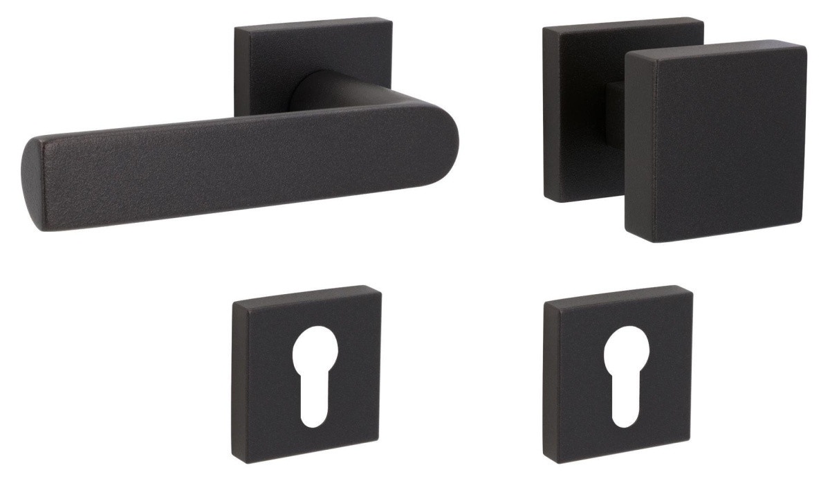 Sada kování obsahuje spojovací materiál a čtyřhran pro tloušťku dveří 38-42 mm.