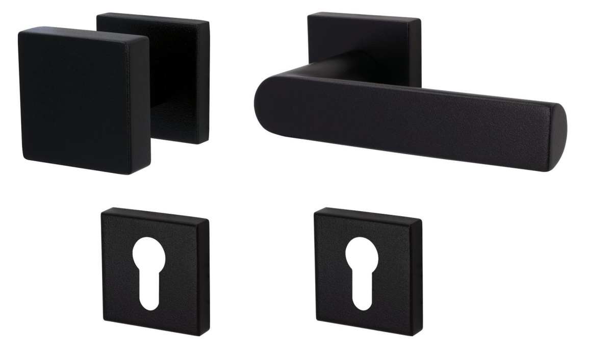 Sada kování obsahuje spojovací materiál a čtyřhran pro tloušťku dveří 38-42 mm.