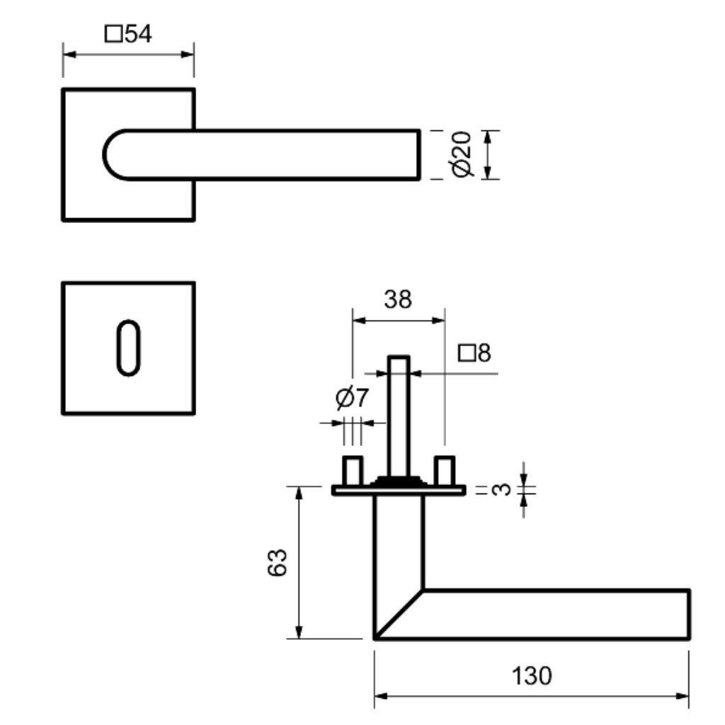 Speciální konstrukce umožňuje montáž rozety na plochu nebo zafrézovaní do dveří. Můžete použít i jako kování se zapuštěnými rozetami.