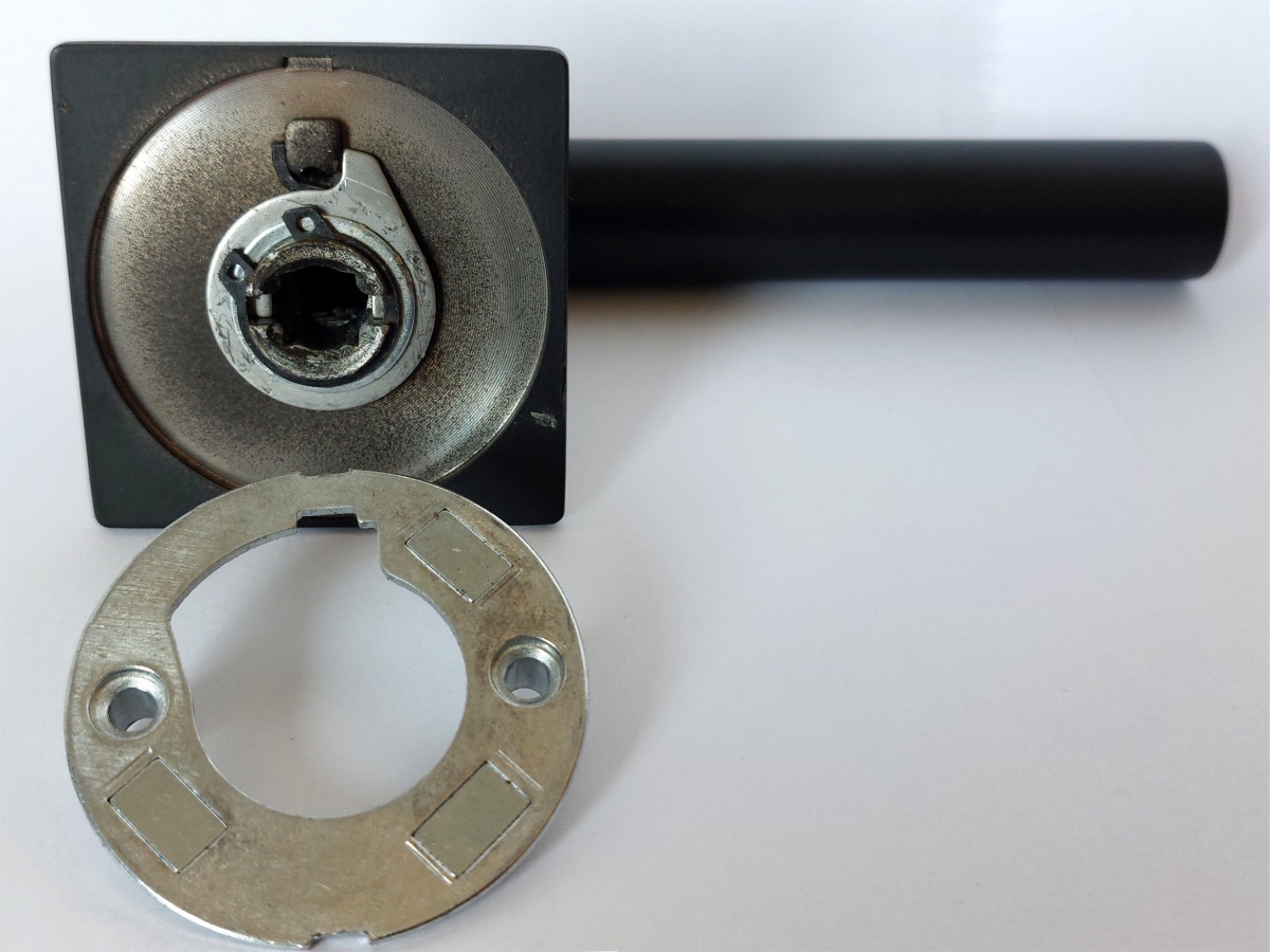 Dveřní kování s plochou rozetou upevněnou na magnet