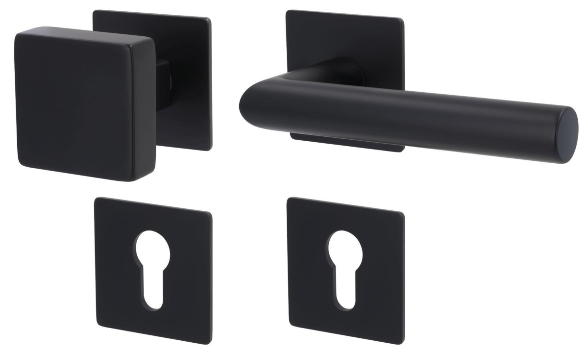 Südmetall Mainz Square, nízká rozeta magnetická Černá matná, Cylindrická vložka, Klika/koule - pravá