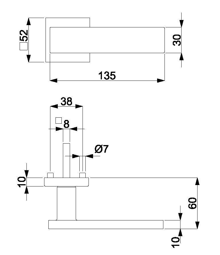 Sada kování obsahuje spojovací materiál a čtyřhran pro tloušťku dveří 38-42 mm.