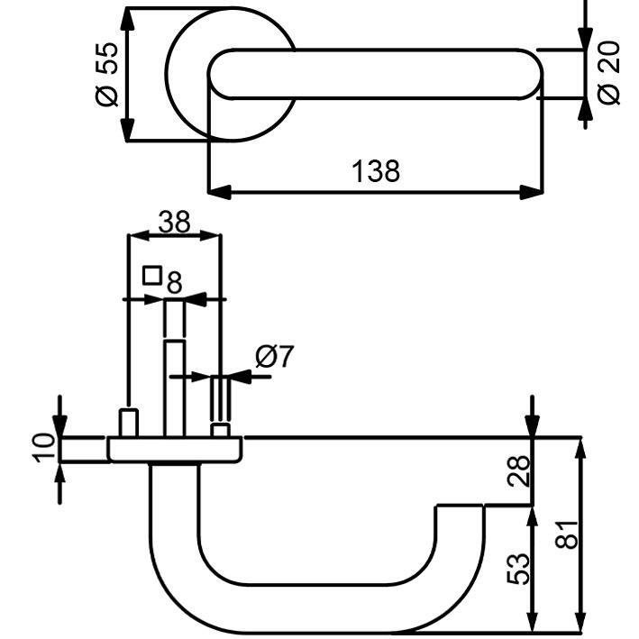 Sada kování obsahuje spojovací materiál a čtyřhran pro tloušťku dveří 38-42 mm.