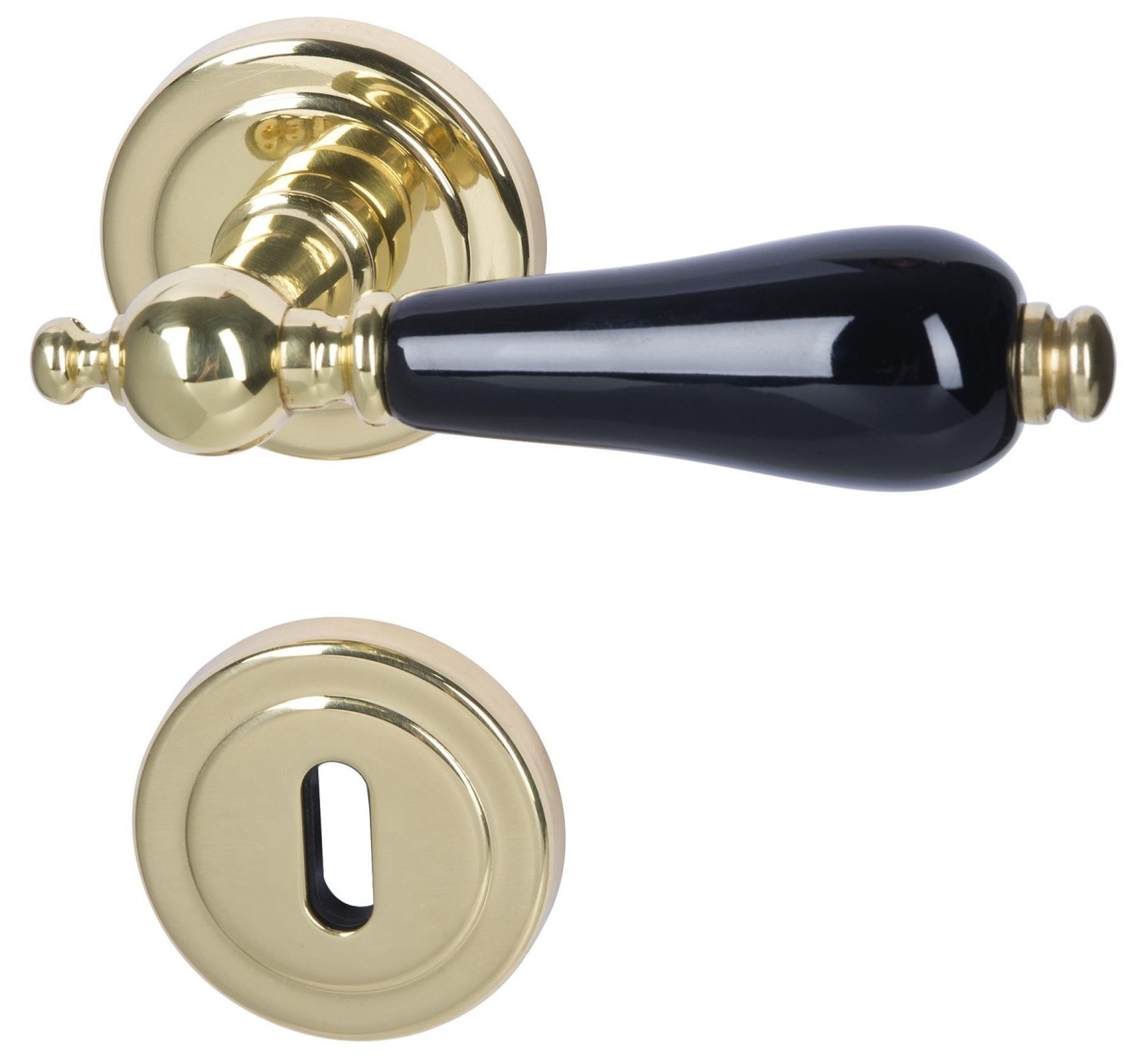 Kování je vyrobeno z masivní mosazi s leštěným povrchem v kombinaci s černou keramikou.