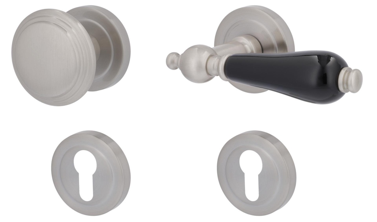 Südmetall Poseidon-R, černá keramika Nerez kartáčovaná/černá keramika, Cylindrická vložka, Klika/koule - pravá