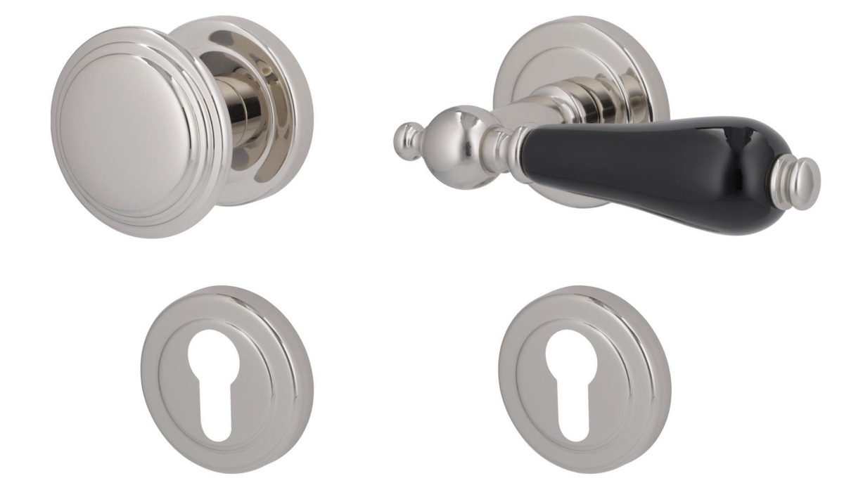 Kování je vyrobeno z masivní mosazi s leštěným povrchem v kombinaci s černou keramikou.