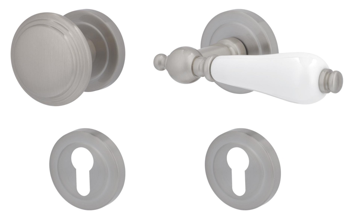 Südmetall Poseidon-R, bílá keramika Nerez kartáčovaná/bílá keramika, Cylindrická vložka, Klika/koule - levá