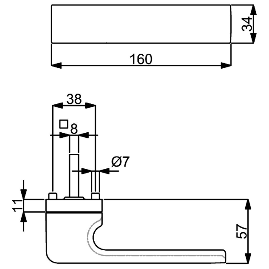 Sada kování obsahuje spojovací materiál a čtyřhran pro tloušťku dveří 38-42 mm.