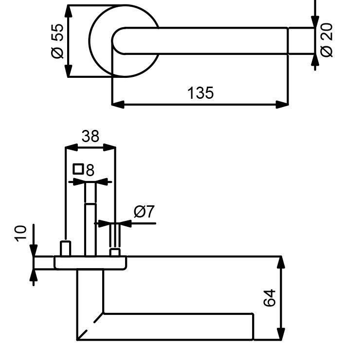 Sada kování obsahuje spojovací materiál a čtyřhran pro tloušťku dveří 38-42 mm.