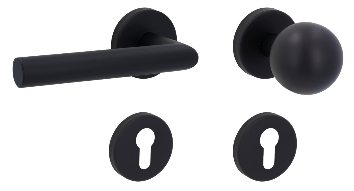 Sada kování obsahuje spojovací materiál a čtyřhran pro tloušťku dveří 38-42 mm.