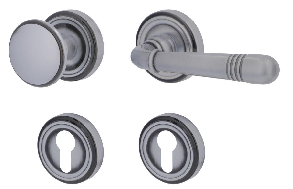 Südmetall Scarlet-R, satin chrom/šedá patina, TopSpeed šedá patina, Cylindrická vložka, Objektové dveře, Klika/koule - levá