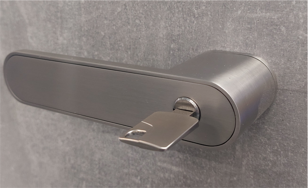 Díky této důmyslné konstrukci je tradiční klíčová rozeta zbytečná a kování zajišťuje jasný estetický vzhled dveří.