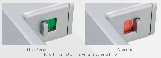 Mechanismus uvnitř kliky umožňuje bez námahy uzamknout dveře WC pouhým ovládáním intuitivně umístěného jezdce.