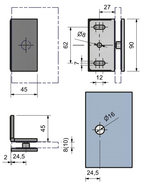 SUPERIOR - rohový úchyt, zeď/sklo 90°, chrom/černá matná/bílá matná