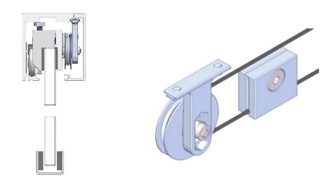 Set synchronního mechanismu pro posuvné, dvoukřídlé dveře v liště Graz