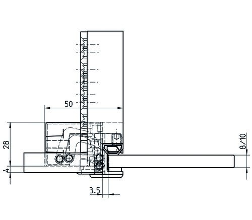 Skrytý pant pro skleněné dveře vhodný pro všechny typy zárubní. Dveřní křídlo je v jedné rovině se zárubní.