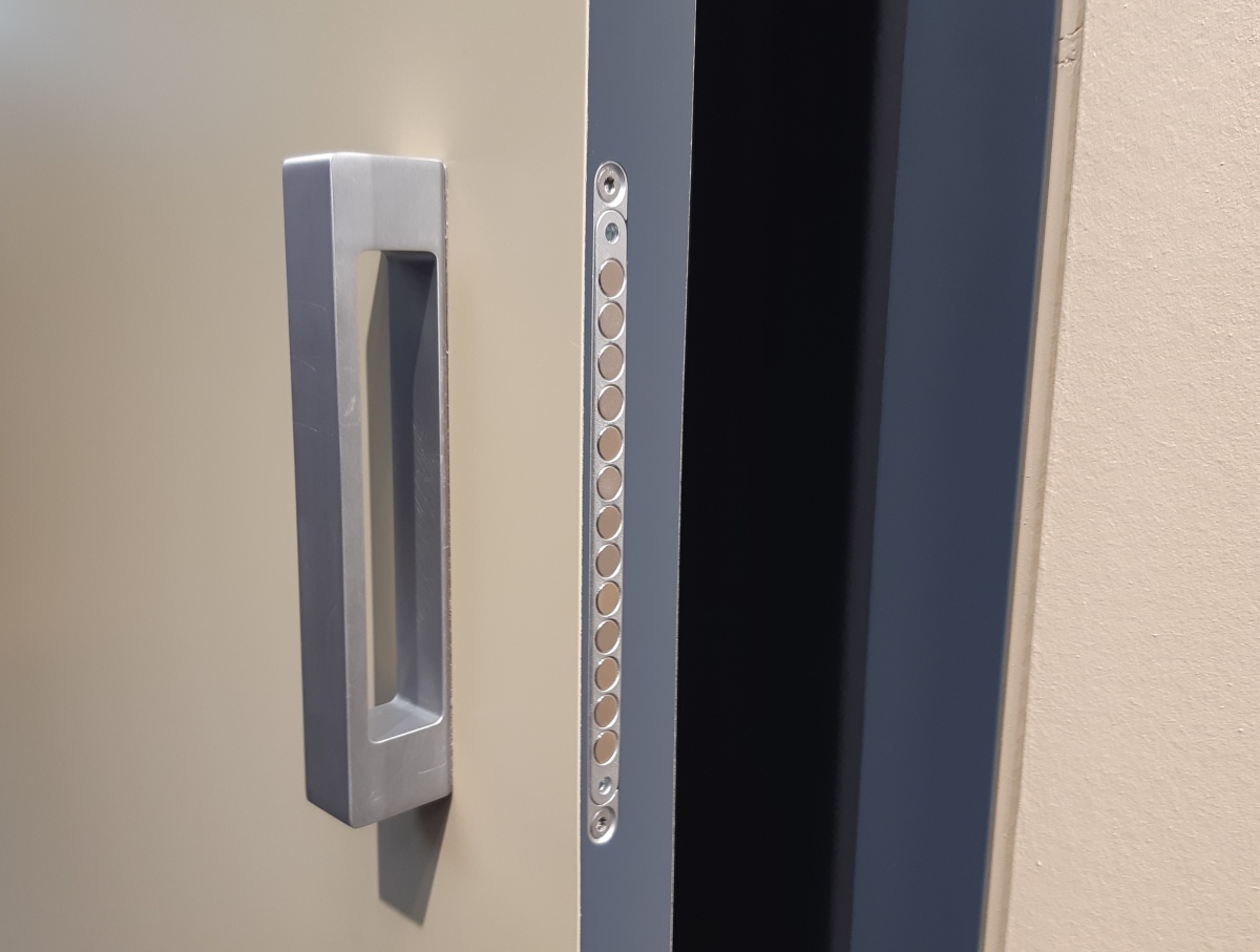 Magnet lze umístit na dveře nebo zárubeň, podle použitého materiálu.
