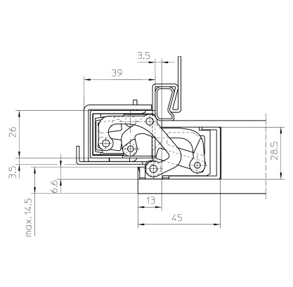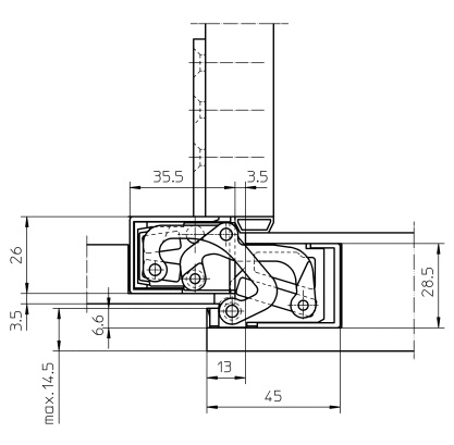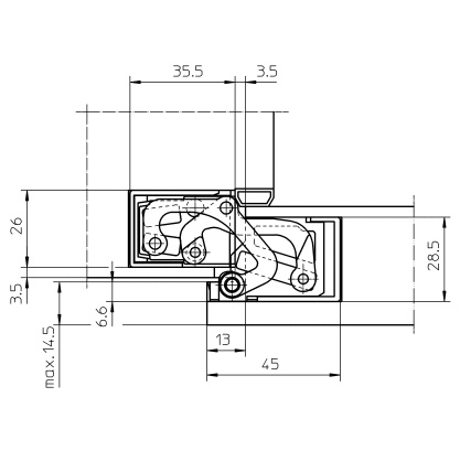 Pravolevý, bezúdržbová ložiska, třídimenzionální seřizování: stranově +/- 3 mm, výškově +/- 3 mm, přítlaku +/- 1 mm